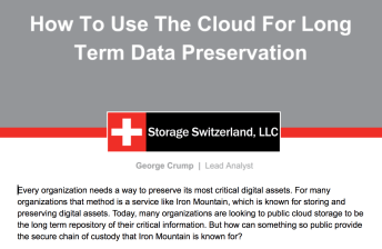 Data preservation requires two components; software to manage the preservation process and secure, scalable storage. The problem for most organizations is finding a location to store preserved data. Iron Mountain and services like it have been the go-to preservation solution. But now organizations are looking to public cloud storage services to store data they need to preserve.
