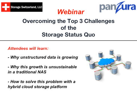 Between 2010 and 2020, IDC predicts that the amount of data created by humans and enterprises will increase 50x. Legacy network attached storage (NAS) systems can’t meet the unstructured data demands of the mobile workforce or distributed organizations. In this webinar, George Crump, Lead Analyst at Storage Switzerland and Brian Wink, Director of Solutions Engineering at Panzura expose the hidden gotcha’s of the storage status quo and explore how to manage unstructured data in the cloud.