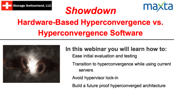 In our on demand webinar, Storage Switzerland and Maxta compares the pros and cons of the two hyperconverged deployment models. Those attending learn how to clarify their goals for hyperconvergence and how to decide which architecture is the best fit for their organizations.