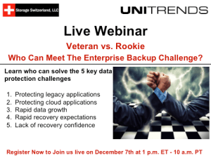 In our on demand webinar “Veteran vs Rookie – Who Can Meet The Enterprise Backup Challenge?” we compare and contrast the different approaches to the market and provide five key areas organizations should consider as the evaluate new backup vendors.