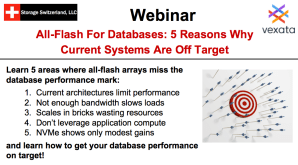 In this on demand webinar join Storage Switzerland’s founder and lead analyst George Crump and Vexata’s VP of Products and Solutions Rick Walsworth as they explain how all-flash systems have fallen short and how IT can realize the full potential of flash-based storage without the compromises.