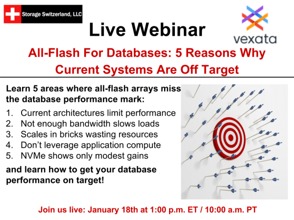 To learn more about why flash systems are not living up to their full potential and how to design systems so they can, join us for our on demand webinar, “All-Flash For Databases: 5 Reasons Why Current Systems Are Off Target.”
