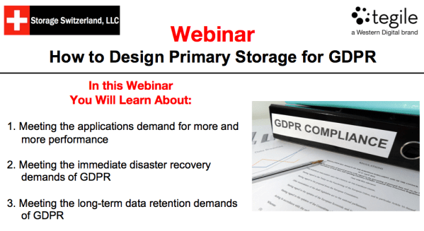 On our on demand webinar, “How to Design Primary Storage for GDPR,” we take a look at one such approach. Attendees to this webinar will learn how to address the day-to-day performance challenges of primary storage with data protection and retention requirements of GDPR.