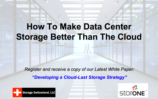 In our on demand webinar, Storage Switzerland and StorOne compare cloud storage to on-premises storage to determine how IT needs to evolve their storage architecture so it provides a better service to the organization than the cloud.