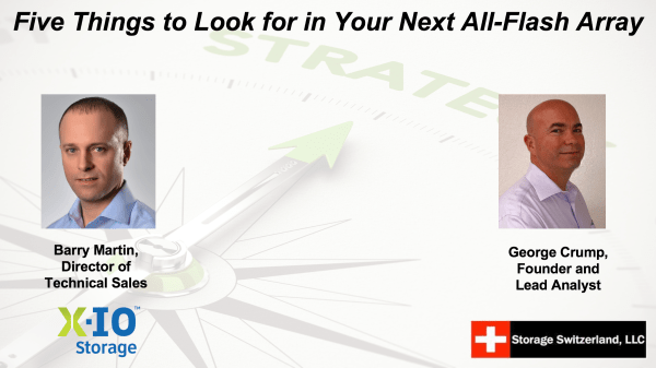The first generation of all-flash arrays has come and gone. For many organizations, the time is now to consider the “next” all-flash array. In our on demand webinar, Storage Switzerland and X-IO Storage discuss five things to look for in your next all-flash array. In this webinar, we discuss lessons learned from the first generation and how to make sure those lessons apply to next-generation all-flash arrays. Even if you’re considering your first all-flash array, this webinar provides the information you need to make the right decision for your enterprise.