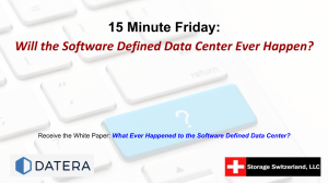 Join Storage Switzerland and Datera for another episode in our 15-minute webinar series, “Will the Software Defined Data Center Ever Happen,” to learn the concept behind SDDC, why it has stumbled out of the gate and what IT Professionals should be demanding from SDDC vendors to deliver the SDDC promise.