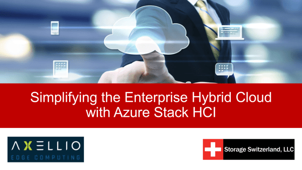 During our on demand webinar, “Simplifying the Large-Scale Hybrid Cloud”, Storage Switzerland and Axellio discuss how Microsoft Azure Stack HCI and Axellio’s FabricXpress Servers can deliver new levels of consolidation in the enterprise. Learn how to intelligently leverage Azure to simplify operations like data protection, business continuity, and data center operations – while deploying less infrastructure and less software for your demanding on-premises workloads.