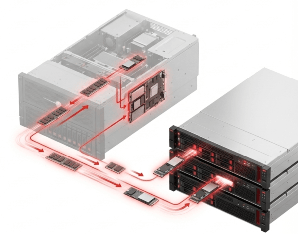 - Parts Donor — A server freed by workload consolidation whose DRAM modules and NVMe drives are redistributed across the active production cluster. Requires a platform that supports mixed node types and mixed hardware specifications.