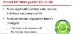 The Always-on Enterprise is a data center that faced with even the most severe disaster can return applications to full working order in a matter of minutes. Service level objectives (SLOs) are the means by which IT and the organization…